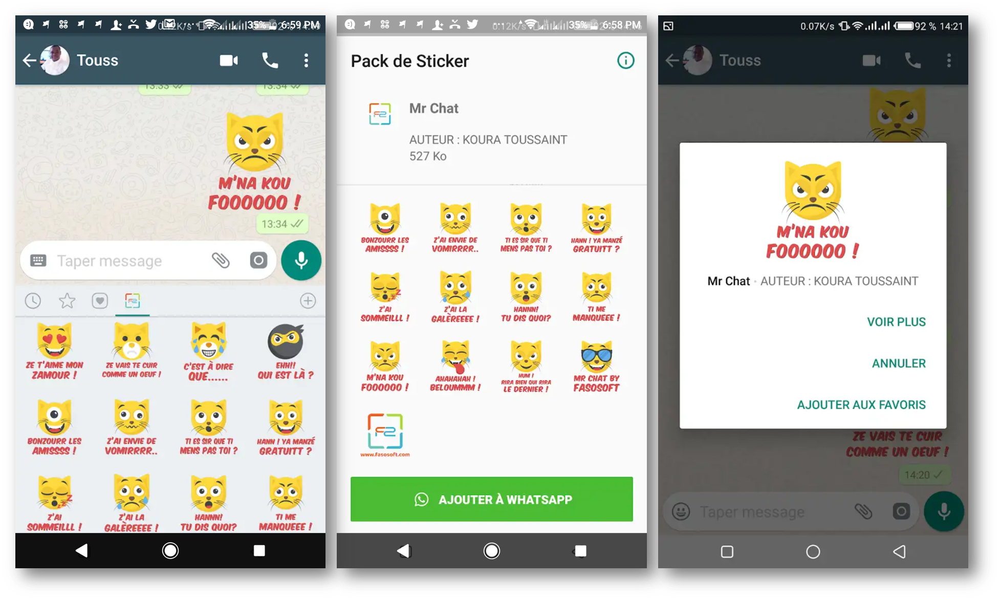 FasoSoft nous propose des stickers, Mr Chat avec des expressions en langues locales
