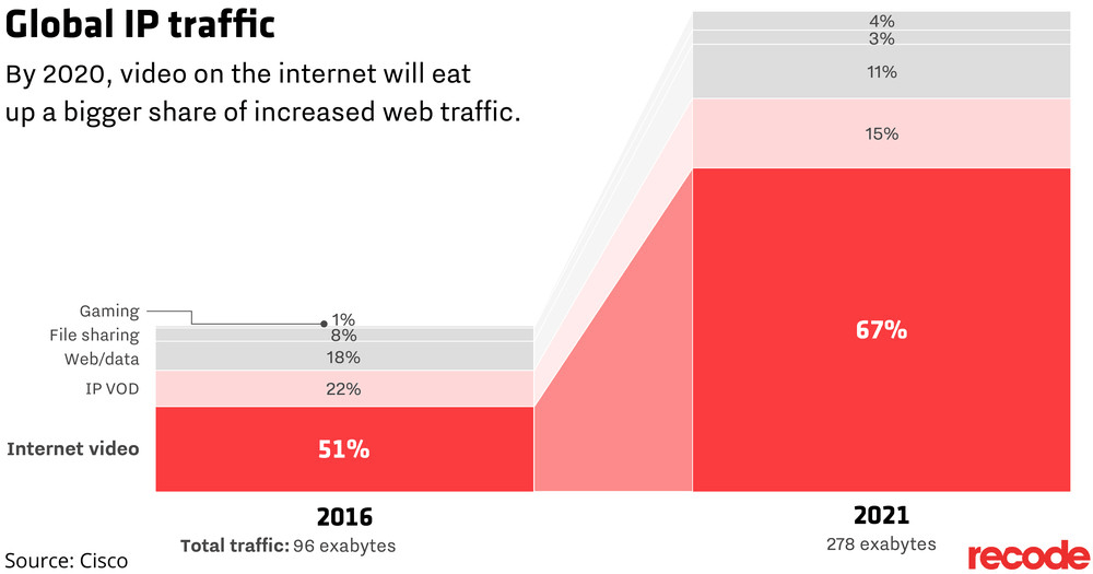 La vidéo va continuer à être l’un des principaux types de contenus consommés par les socionautes en 2020 et mêmes les années plus tard. Selon Cisco, en 2021, 81% du trafic d’Internet sera du contenu vidéo.