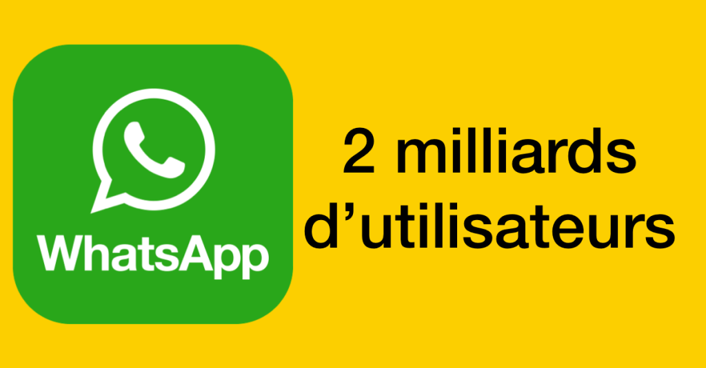 WhatsApp rejoint le club 2 milliards, le cercle très très fermé des plateformes à 2 milliards d’utilisateurs.
