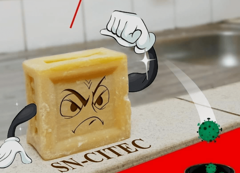 Et un bon savon SN-CITEC fait l’affaire proprement ! C’est aussi la raison pour laquelle il faut se frotter les mains avec le savon pendant 20 à 30 secondes, le temps de laisser le savon casser du virus.