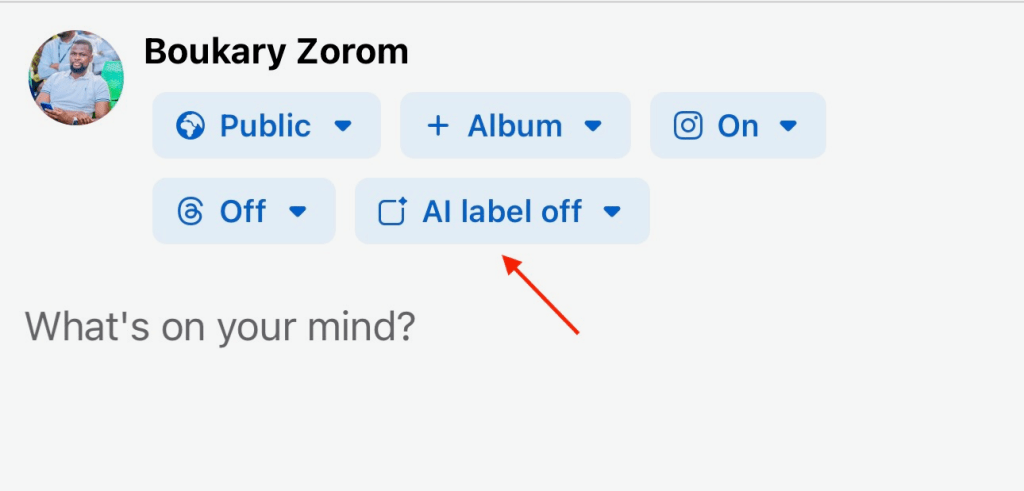 Déjà, lorsque vous publier du contenu sur Facebook, vous avez le choix pour ne pas dire le devoir de cocher si oui ou non il a été généré par l’IA.